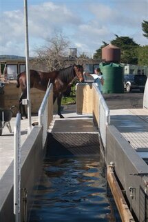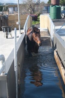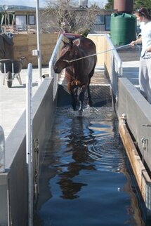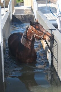 The hydro treadmill has a proven record overseas with riding horses of many kinds. It has been proven to improve muscle tension etc. This benefits for example: dressage horses to feel freer.