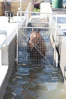 Our systems allow a horse to exercise basically the same muscles, tendons, and ligaments used when working out on the track without the constant unyielding concussion of the surface track. The buoyancy of the water displaces approximately 40% to 45% of the body weight – while contact with the treadmill and thrust of working against the water still affords sufficient concussion to promote bone density and encourage muscle development, while minimising injury. This cannot be achieved in a conventional swimming pool where movement involves "up-hill" thrusts and an unnatural ‘all-out’ type of flexation, which could be harmful and could cause ‘stress’ and ‘trauma’ for the animal.